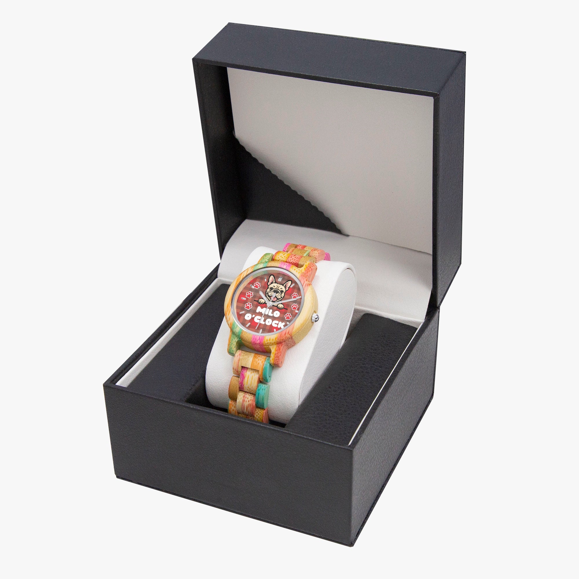 French Bulldog Milo O’clock Personalized Stylish Wooden Watch For