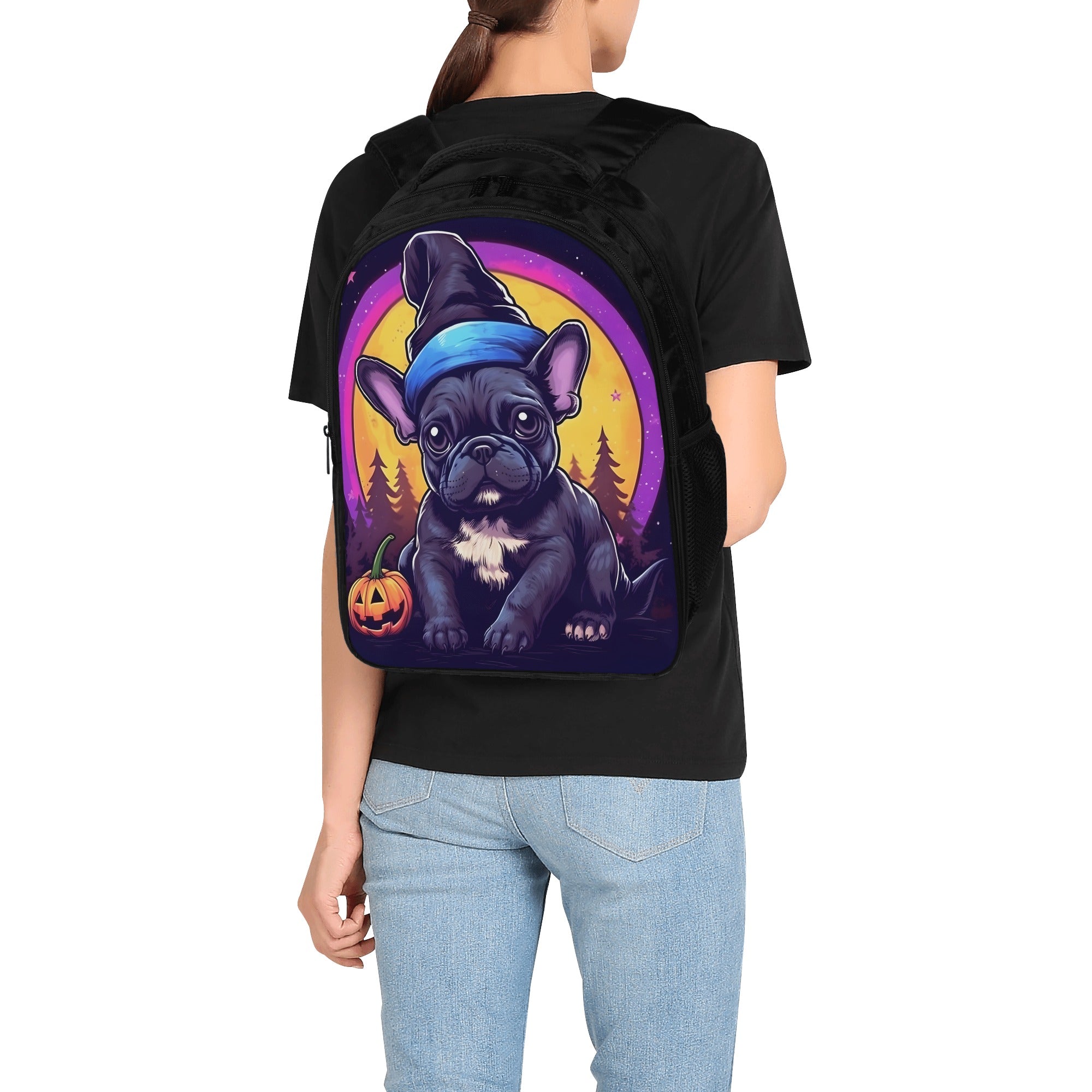 French Bulldog Lover The Magician 16 Inch Dual Compartmen Backpack Cute Wall Art